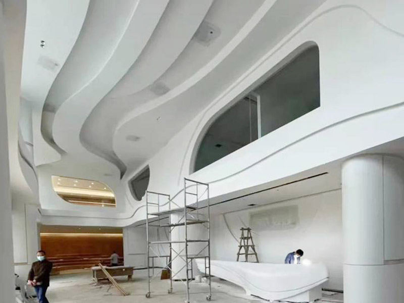 GRG造型在施工过程中可以根据设计要求进行定制制作,可以表现出精美细致的纹理和雕塑效果,使室内空间更加独特、具有艺术感。同时,它还具有环保性能,不含有害物质,对人体健康无害。